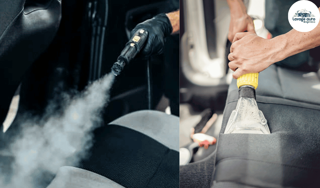 - Lavage à la vapeur : Grâce à la chaleur, la vapeur élimine naturellement les bactéries, les germes et les acariens sans laisser de résidus chimiques. Cela en fait une solution plus saine, notamment pour l’intérieur du véhicule.
